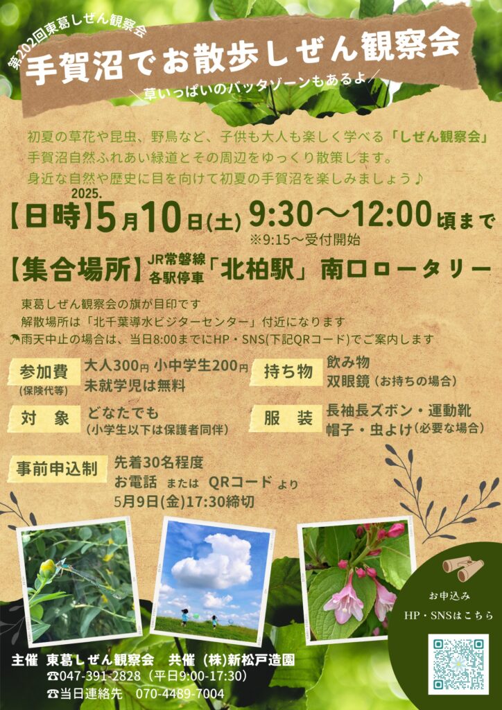 【雨天中止】5/10(土)手賀沼でお散歩しぜん観察会 2025-04-15 最終更新日時 : 2025-05-29 shinmatsudo お申込フォーム https://forms.gle/fGLWxQSFSXzuNU9u9 手賀沼自然ふれあい緑道 公式SNS https://instabio.cc/4051522128yC7