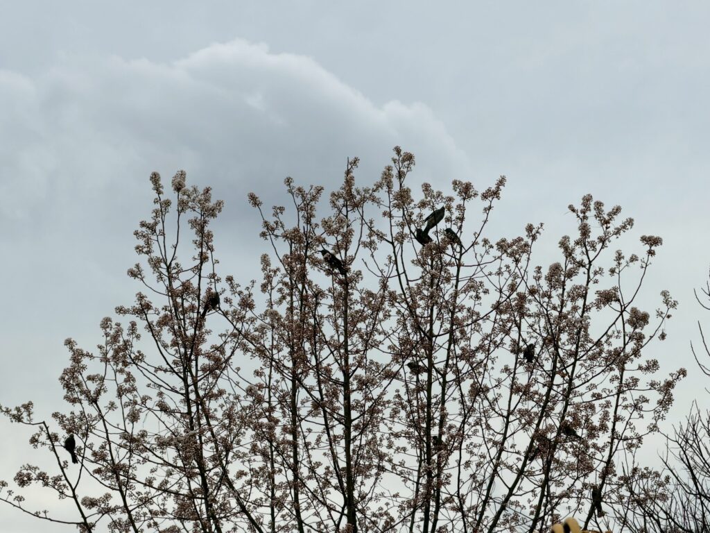 さっそく、ヒヨドリやムクドリが、花芽をねらってやってきています